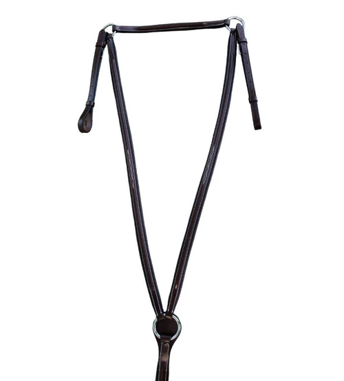 Black Oak Raised Fancy Stitched Hunter Breastplate has traditional elegance with round raising and fine stitching on Havana brown leather. This traditional hunter breastplate is perfect for completing your hunter tack and keeping your saddle from slipping.