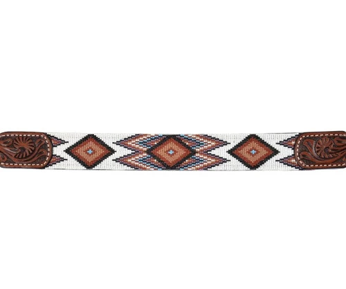 Beaded Aztec Infinity Breast Collar from Circle Y has a classic Southwestern beaded pattern in crisp brown and white. The sturdy doubled leather breast collar has beaded overlays and hand tooled accents. The Beaded Aztec Infinity Breast Collar matches the Circle Y Beaded Aztec Infinity Brow Headstall to create a stunning tack set.