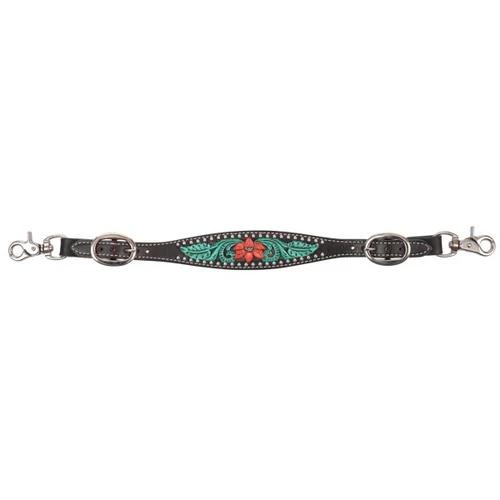 Circle Y Cactus Flower Wither Strap not only allows full mobility for your horse, it beautifully completes your tack set. The deep chocolate brown leather has a hand carved painted flower filigree overlay over a vintage underlay. Stainless steel dots and cart buckles complete the sturdy construction and design. Mary’s Tack is a Circle Y Regional Partner so shop here first for great selection and service.
