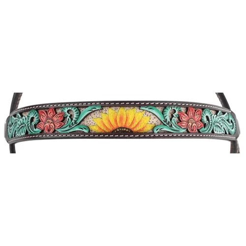 Circle Y Rising Sunflower Brow Headstall is rich with artistic detail and sunny good vibes. With warm Chocolate leather, hand carved filigree overlay, and lushly painted flowers, the Rising Sunflower Brow Headstall offers a unique look that is sure to please.