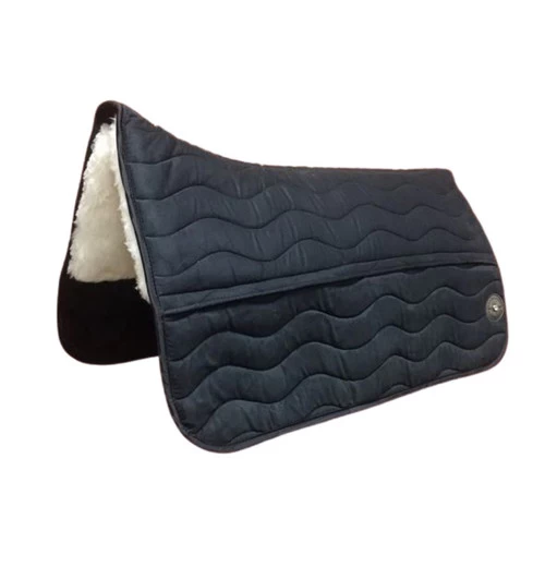 MAD PAD Western Pad from Coopersridge has cruelty-free natural wool shearling on the underside to give your horse soft comfort and wicking, compression resistant performance. The Motion Balance Fabric includes several layers that work together to create a slip-free, cushioning feel for horse and rider. Western square pad with shearling offers a high wither clearance, seamless spine, and Velcro pockets for accessing shims. The MAD PAD square Western pad comes with one set of full PMG inserts. Separate front and back PMG shims can be added or removed as needed to fine tune saddle fit.