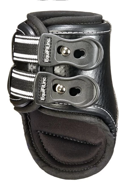 EquiFit D-Teq Hind Boots with Color Binding let you choose the perfect accent color for these incredibly protective horse jump boots. EquiFit D-Teq ankle boots have ImpacTeq liners for state-of-the-art horse leg protection. These hind D-Teqs are Black with Black Ostrich panels and your choice of Red, Navy, Green, or Brown binding. Choose the color to match your EquiFit half pad, your saddle pad, your show team colors, or whatever suits your beautiful horse!