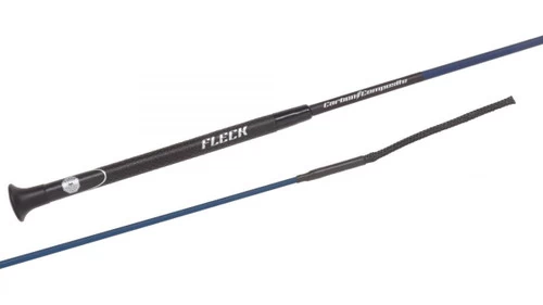 The ease of access and use makes it an excellent whip for sensitive horses and fosters a quieter, prettier ride. Dressage whip in USEF and FEI legal 100 cm and 110 cm lengths is perfect as your dressage schooling whip or show whip. Whip in 100 cm length can be used for FEI Pony tests. Fleck dressage whip has a carbon composite shaft and plastic end cap. Total whip length, including the lash, measures 100 cm or 110 cm.