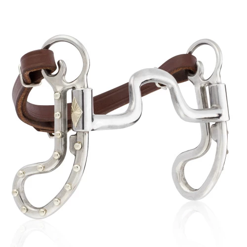 The Legacy Bit is offered in 3 styles: plain shiny Stainless Steel Shanks with lightly-contrasting Diamond Shaped Trim, and two versions of decorative dots (one with a Stainless Steel shank and one with an Antique Bronze shank). The mouthpiece is made of Sweet Iron. One size fits 5-5.25″ mouthpiece. Mikmar Item #LEG110SS, LEGSSD, LEGBR