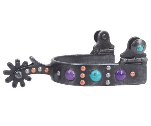 Professional’s Choice Purple Dot Spurs for men and women have beautiful purple and turquoise dots for classic Western flair. Western Purple Dot Spur has a wide band with attractive steel, copper, and marbled dots.