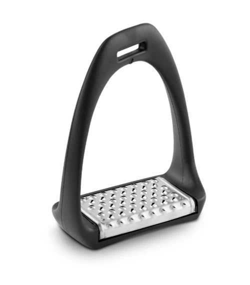 Lightweight and elegant, the Royal Rider T3 Stirrup has excellent grip with metal cheese grater pads, which can be switched to the included rubber pads if desired. Light, comfortable, safe, secure, and handsome, the Royal Rider T3 Stirrup Iron is a smart choice for equestrian competitors and casual riders alike. All Royal Rider products are designed and made in Italy using the highest grade materials and strict control of production.