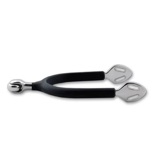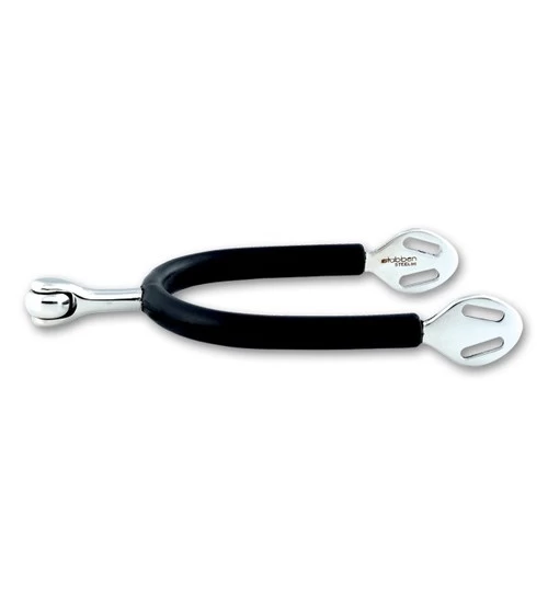 The Stubben SEQ Soft Touch Spur is made of flexible stainless steel that allows the rider to form the spur to their individual size, need, and comfort. This flexibility allows SEQ spurs to fit both men and women. Covered in a non-slip material that also protects boots. The wheels of the unique Soft Touch spurs are shaped in a way that all points are identically rounded to make them smooth and soft. The special design of this rowel allows for a faster rotation of the wheel, encouraging a better and softer leg aid. With the SEQ Soft Touch Spurs, the rider can simply place the spurs on the horse’s side while the lower leg can remain absolutely still. Due to the movement of the horse, the rowel will rotate and run across the horse’s side by itself. These rubber wrapped spurs from Stubben allow the rider to give more accurate and precise aids.