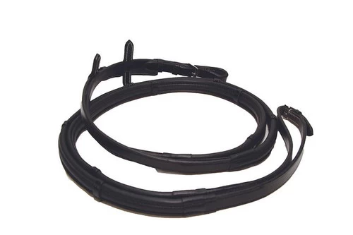ThinLine English Reins with Stops and Buckle End are non-slip reins with a soft feel and extra secure grip with leather hand stops. These specially designed reins in regular (54″) length have buckle ends and are available in Black.