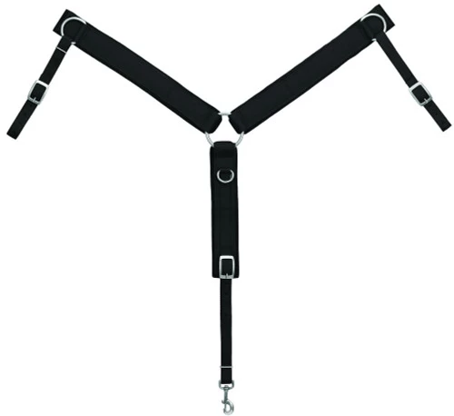 Weaver Leather’s Felt Lined Nylon Breast Collar is a great economical choice for western riders. This 2″ wide nylon webbing breast collar has a 100% felt lining on the breast pieces and center snap. The felt lining is 1/2″ thick for cushioning, pressure dispersal, and sweat wicking. The Felt Lined Nylon Breast Collar from Weaver has a covenient tie down dee and a swivel snap for easy cinch attachment. The durable hardware is nickel plated excpet for the stainless steel center ring. This nylon webbed breast collar is available in Horse size.