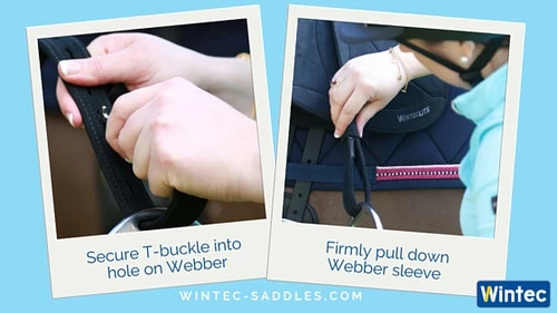 The revolutionary design of Wintec Webbers means there is only a single length of strap and no buckles to create a bulge under your saddle and against your leg. This allows a close contact feel with your horse. Refer to the step by step photos for attaching and using your Wintec Webbers.